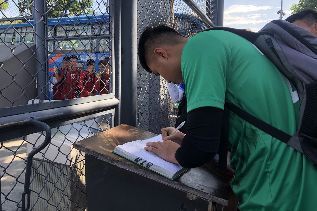 Buổi tập của U22 Việt Nam bắt đầu từ 10 giờ trên mặt sân nhựa Circuit Makati Blue Pitch ở Manila, Philippines. Để đảm bảo an ninh, tất cả cầu thủ và thành viên ban huấn luyện vào sân đều phải đăng ký vào cuốn sổ của lực lượng bảo vệ.