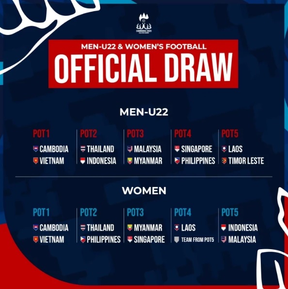 Chủ nhà Campuchia tổ chức lễ bốc thăm, chia bảng môn bóng đá nam và nữ SEA Games 32 vào 15h chiều nay Thứ Tư 5/4.