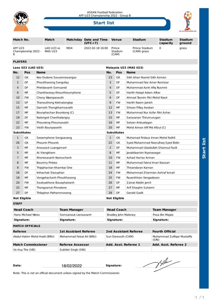 Với mục đích đảm bảo mỗi đội được thi đấu ít nhất 2 trận nhằm tạo cơ hội cọ xát cho các cầu thủ để hướng đến SEA Games 31, trận đấu giữa U23 Malaysia và U23 Lào sẽ đá theo thể thức lượt đi và về.