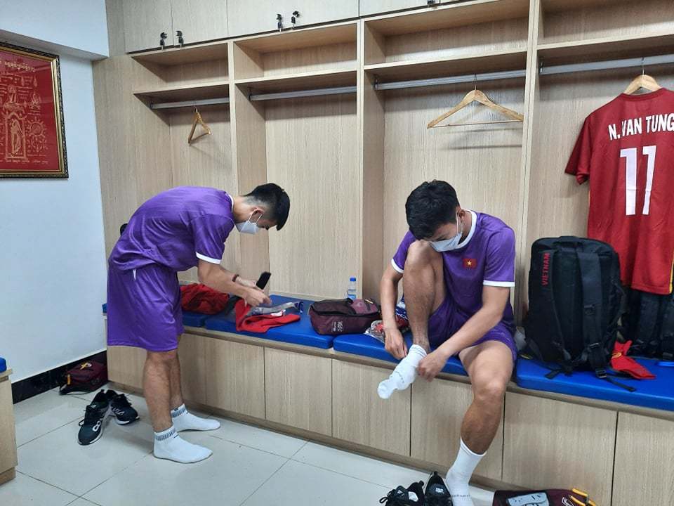 Trận đấu U23 Việt Nam vs U23 Thái Lan bắt đầu vào lúc 19h, nhưng 17h35 Tuấn Tài và Đình Hai – 2/6 sự tiếp viện từ quê nhà, mới có mặt ở phòng thay đồ sau khi di chuyển thẳng từ sân bay về sân nhờ lực lượng hộ tống.