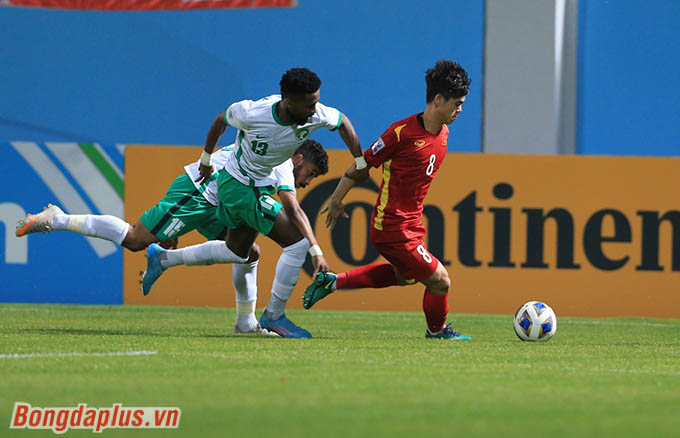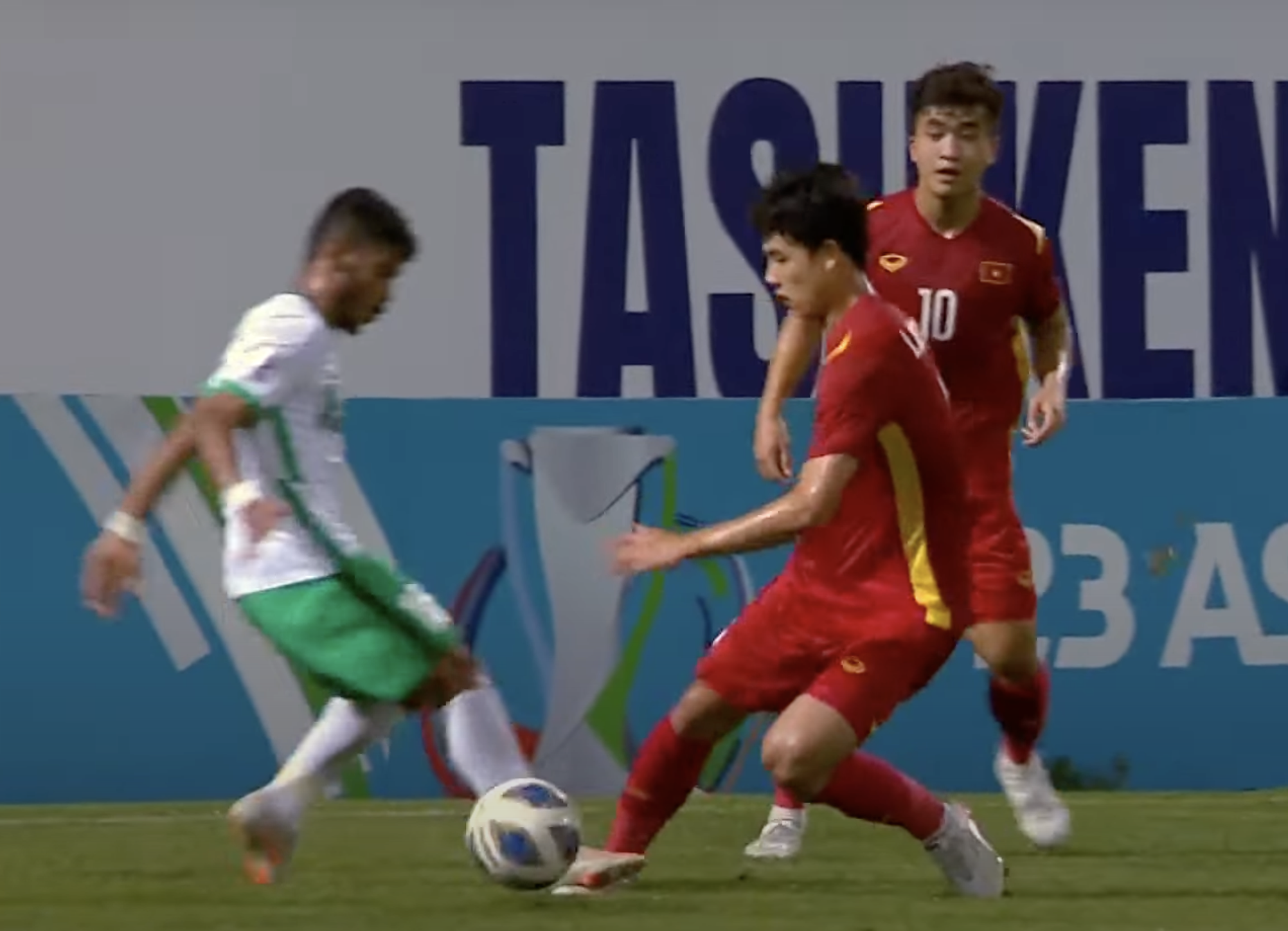 13' NhâmMạnh Dũng che chắn khôn ngoan khiến hậu vệ trái của U23 Saudi Arabia không thể giành được bóng. Sau đó, anh xoay người loại bỏ đối phương trước khi đi bóng tốc độ vào vòng cấm địa. Dẫu vậy, góc sút quá hẹp khiến Mạnh Dũng dứt điểm không thành công.