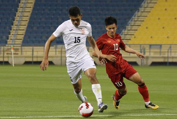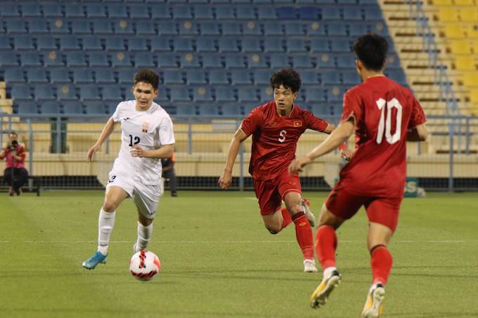 Cầm bóng nhiều, nhưng những đường tấn công của U23 Việt Nam vẫn chưa đủ thanh thoát trước đối thủ Kyrgyzstan. Trong khi đó, hàng phòng ngự U23 Việt Nam vẫn còn để lộ những khoảng trống cho đối thủ khai thác. Phút 45, U23 Việt Nam suýt nhận bàn thua từ cú đánh đầu của đối thủ sau quả đá phạt góc. May mắn cho U23 Việt Nam là thủ môn Văn Chuẩn đã bay người cứu bóng bằng những đầu ngón tay.