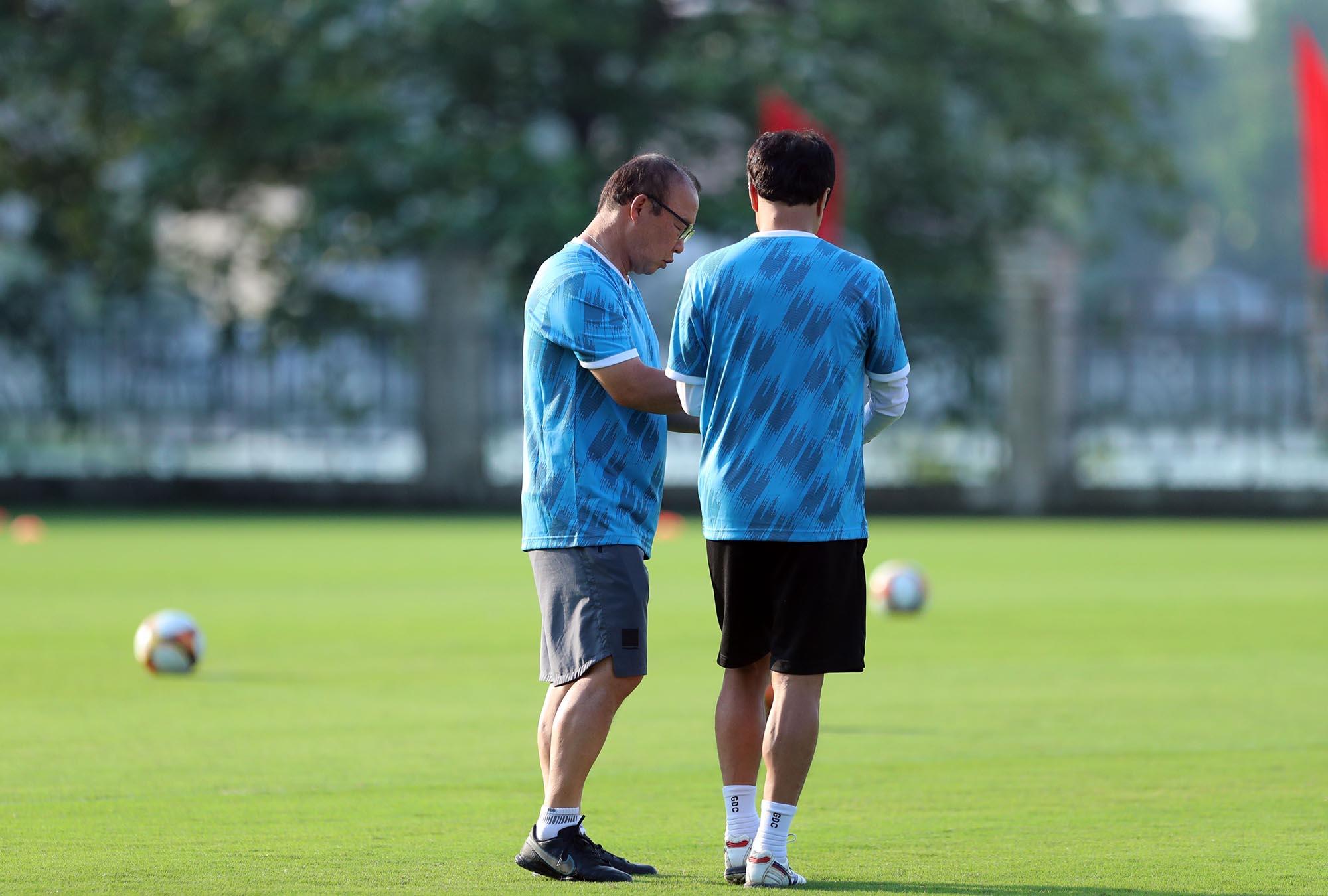 Chiến lược gia người Hàn Quốc trầm ngâm, cũng như dành khá nhiều thời gian trao đổi cùng “cánh tay phải” Lee Young Jin trước khi bước vào khoảng thời gian tập kín.