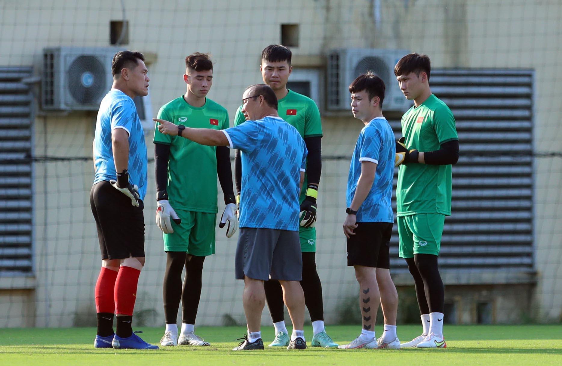 Không chỉ có vậy, ông Park dành một thời lượng chẳng nhỏ để trao đổi nhiều điều với các thủ môn Quan Văn Chuẩn, Văn Toản và người dự phòng Xuân Hoàng lẫn trợ lý Nguyễn Đức Cảnh.