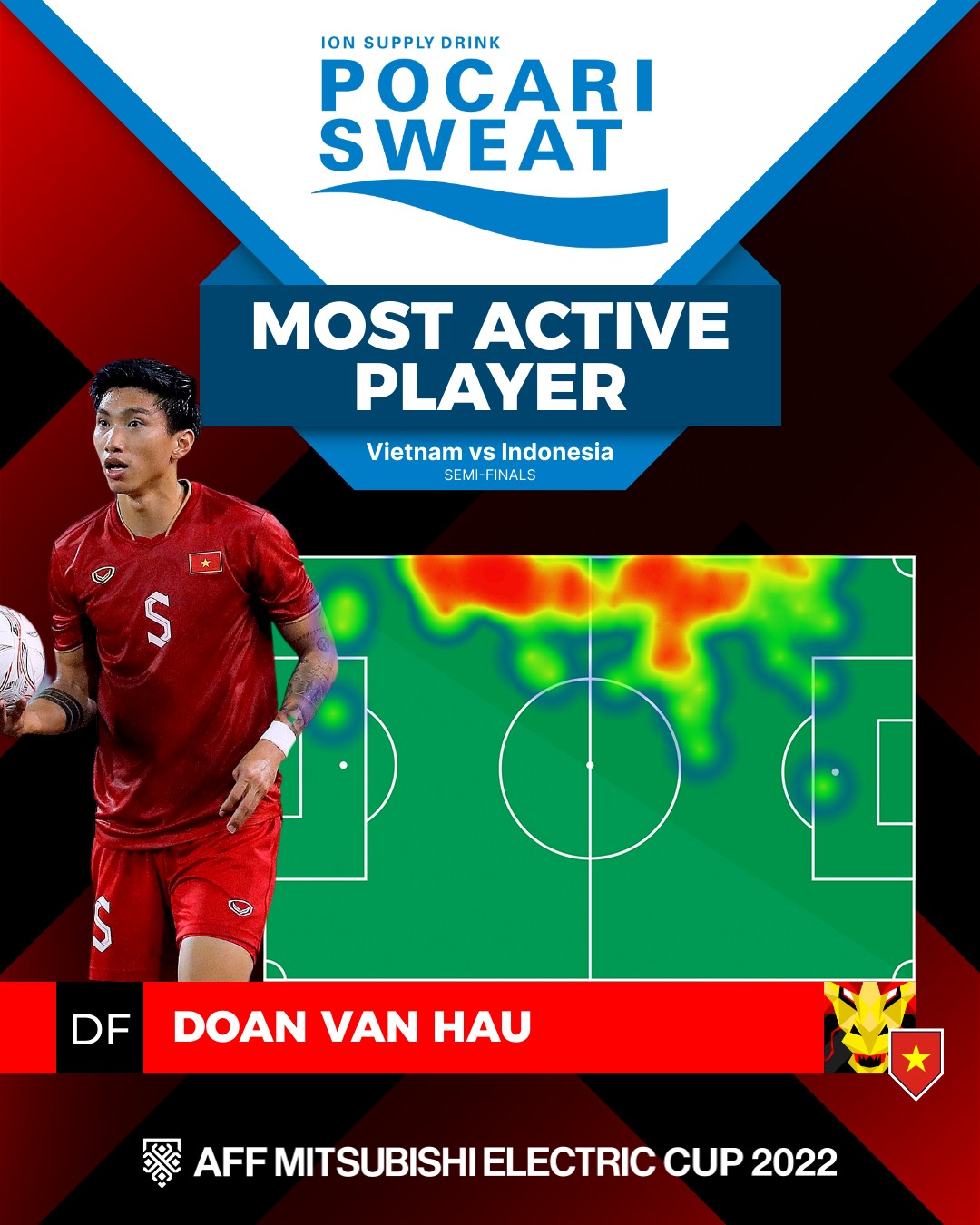 Theo biểu đồ nhiệt do ban tổ chức đăng tải, Hậu Hậu đã "cày nát" hành lang cánh trái, làm tê liệt cánh phải của Indonesia với những tình huống lên công về thủ hiệu quả.