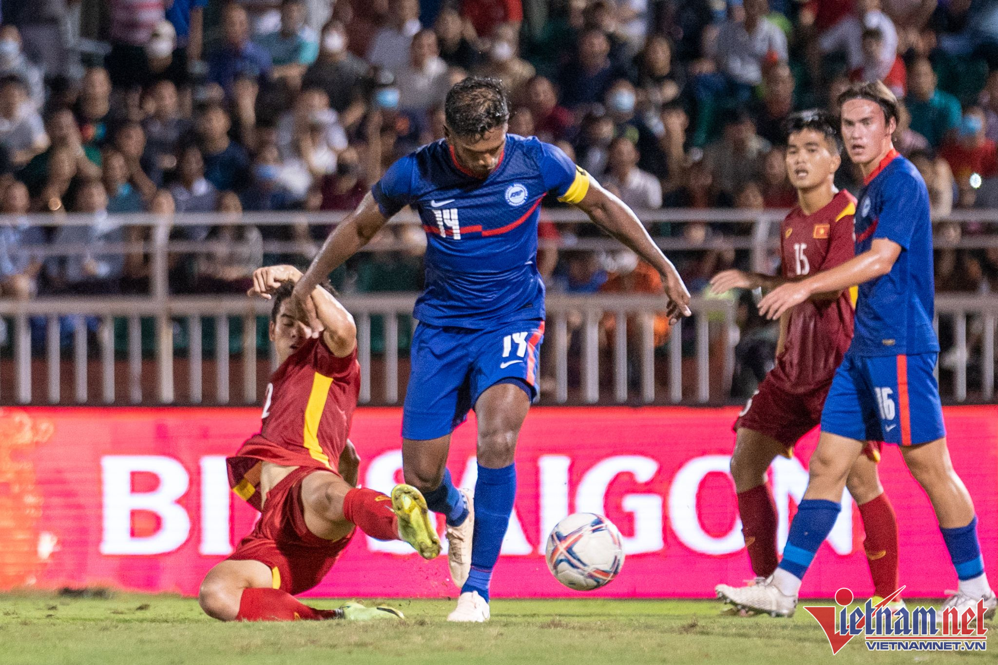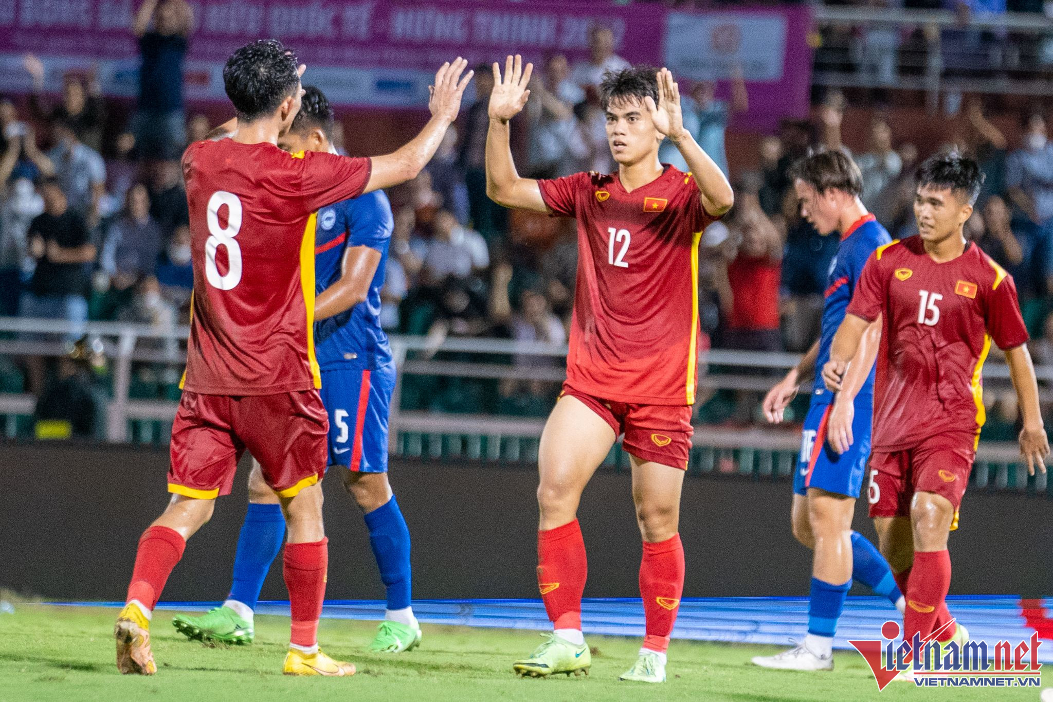 Dù chưa hồi phục 100% thể lực, nhưng ngay sau khi vào sân ở phút 76, tiền vệ sinh năm 2003 thi đấu rất năng nổ. Sau 7 phút trên sân, Văn Khang đã tỏa sáng với bàn thắng ấn định chiến thắng 4-0 cho tuyển Việt Nam trước Singapore.