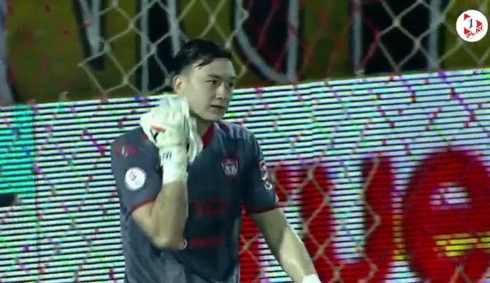Thời điểm ít phút bù giờ cuối cùng, Đặng Văn Lâm cũng tỏ ra rất sốt ruột. Anh băng lên tận khu vực giữa sân với hy vọng có thể hỗ trợ các đồng đội tấn công. Ngay trước đó, anh có một tình huống băng lên rất cao để phá bóng khi Trat FC tổ chức phản công.