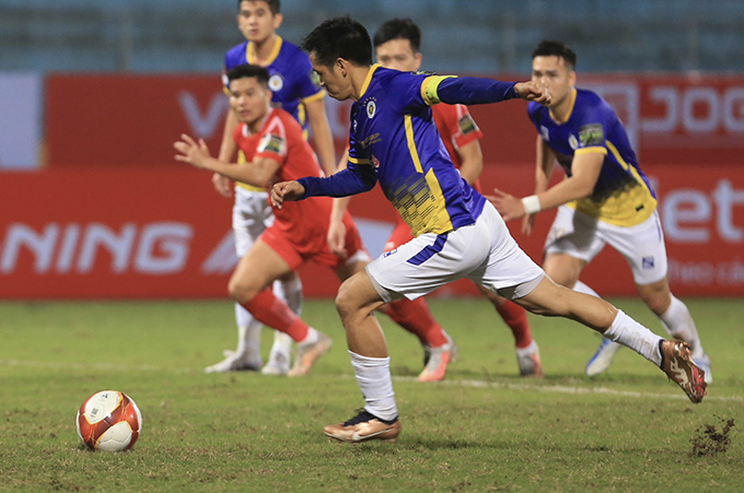 Trên chấm phạt đền, Văn Quyết đã không mắc sai lầm nào để ghi bàn thắng cho đội nhà.