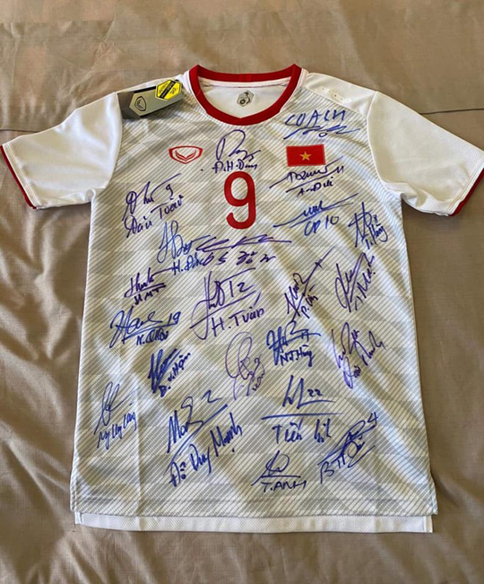 "Chiếc áo này mình mua để lấy chữ ký làm kỷ niệm sau này. Nhưng hôm nay mình muốn bán đấu giá chiếc áo này để ủng hộ cho địa phương của mình. Số tiền được bao nhiêu mình sẽ chuyển tới phường Thạch Khôi (TP.Hải Dương, tỉnh Hải Dương) để có thể giúp được một phần nhỏ cho phường mình vượt qua dịch Covid-19 lần này".