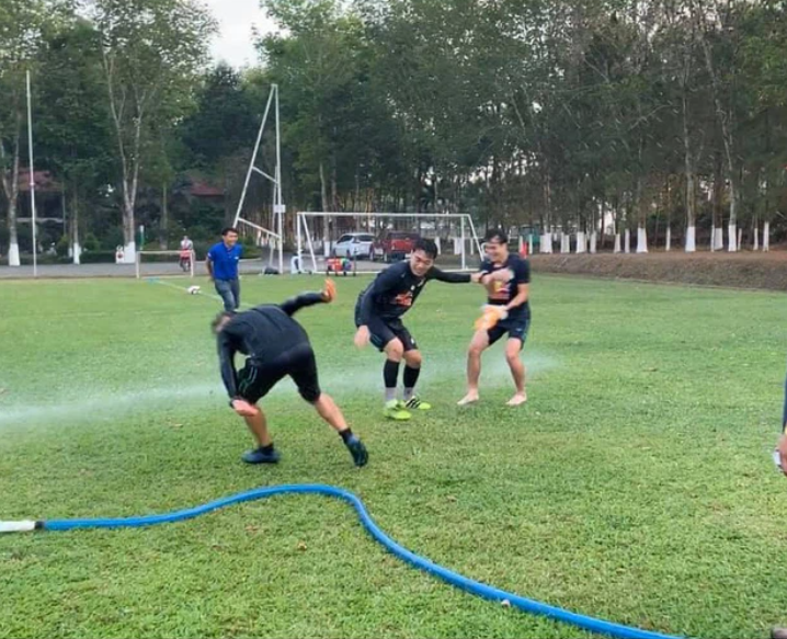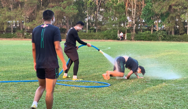 Trên mạng xã hội, fan HAGL mới đây chia sẻ hình ảnh Văn Toàn bị thủ môn Lê Trường cầm vòi xịt nước lớn xịt tới tấp. Anh chàng không thể tránh được nên đành bất lực chịu trận với đủ các tư thế như chổng mông, ngã lăn, hở lưng cốn áo vì bị "ăn hành". Đây được xem là cách anh chàng phải "trả giá" vì đã xối nước trêu đùa hội anh em Xuân Trường - Công Phượng lúc đang trả lời phỏng vấn.