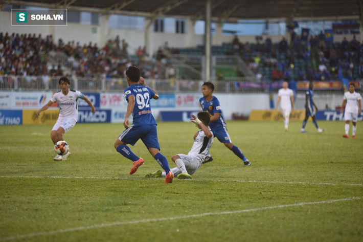 Cú cầm bóng lách người của Văn Toàn vừa khéo khiến chân của Mạnh Toàn vướng vào gót chân của anh, tạo nên một cú ngã cực đẹp trong vòng cấm. Trọng tài Vũ Nguyên Vũ dứt khoát chỉ tay vào chấm phạt đền. Vũ Văn Thanh bước lên hoàn thành nốt phần còn lại, đưa HAGL vươn lên dẫn trước.