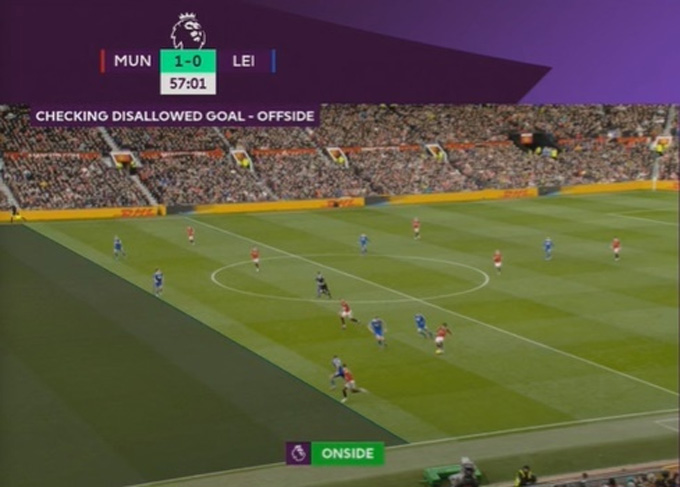 Xem lại băng hình, bằng mắt thường có thể cảm nhận Rashford đã ở dưới hậu vệ cuối cùng của Leicester. Tuy nhiên, VAR sau đó đã kẻ vạch và công nhận bàn thắng cho MU.