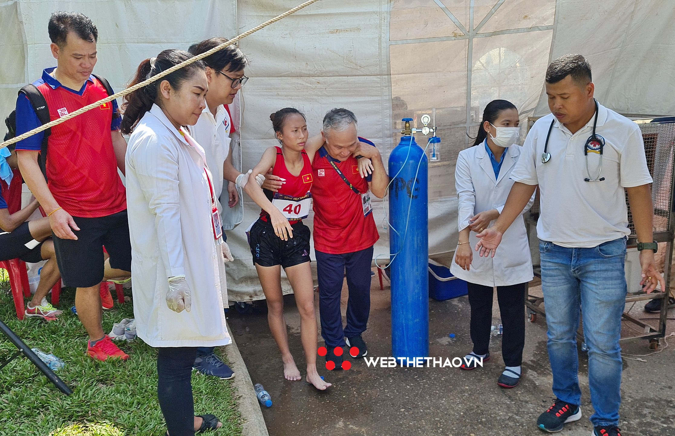 06/05/2023 18:45VĐV điền kinh Việt Nam từ chối xe cứu thương, quyết về đích dù sốc nhiệt trên đường chạy marathon SEA Games 32