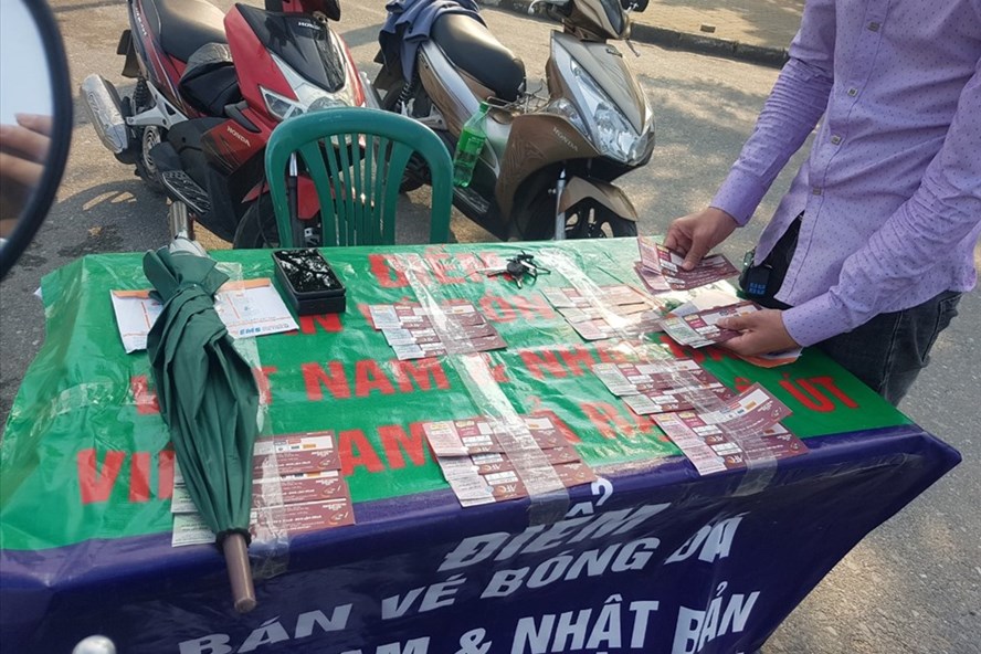 Còn nhớ mấy ngày trước, vé xem trận tuyển Việt Nam - Nhật Bản cũng khiến các phe vé phải "méo mặt" vì số lượng vé ế rất nhiều. Ngay sát giờ đá, nhiều tấm vé ghế đẹp được bán "rẻ như cho" chỉ với 100.000 đồng/vé.