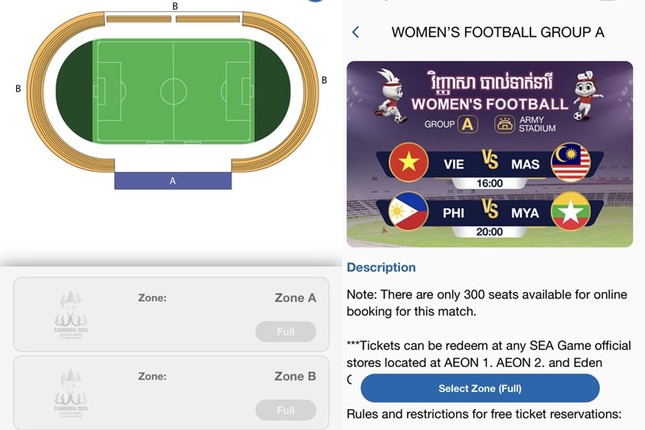13h00 hôm nay, ban tổ chức SEA Games 32 đã mở cổng đăng ký vé xem trận đấu giữa tuyển nữ Việt Nam và tuyển nữ Malaysia. Trận ra quân của thầy trò HLV Mai Đức Chung diễn ra vào lúc 16h00 ngày 3/5 tại trên sân Army Stadium.