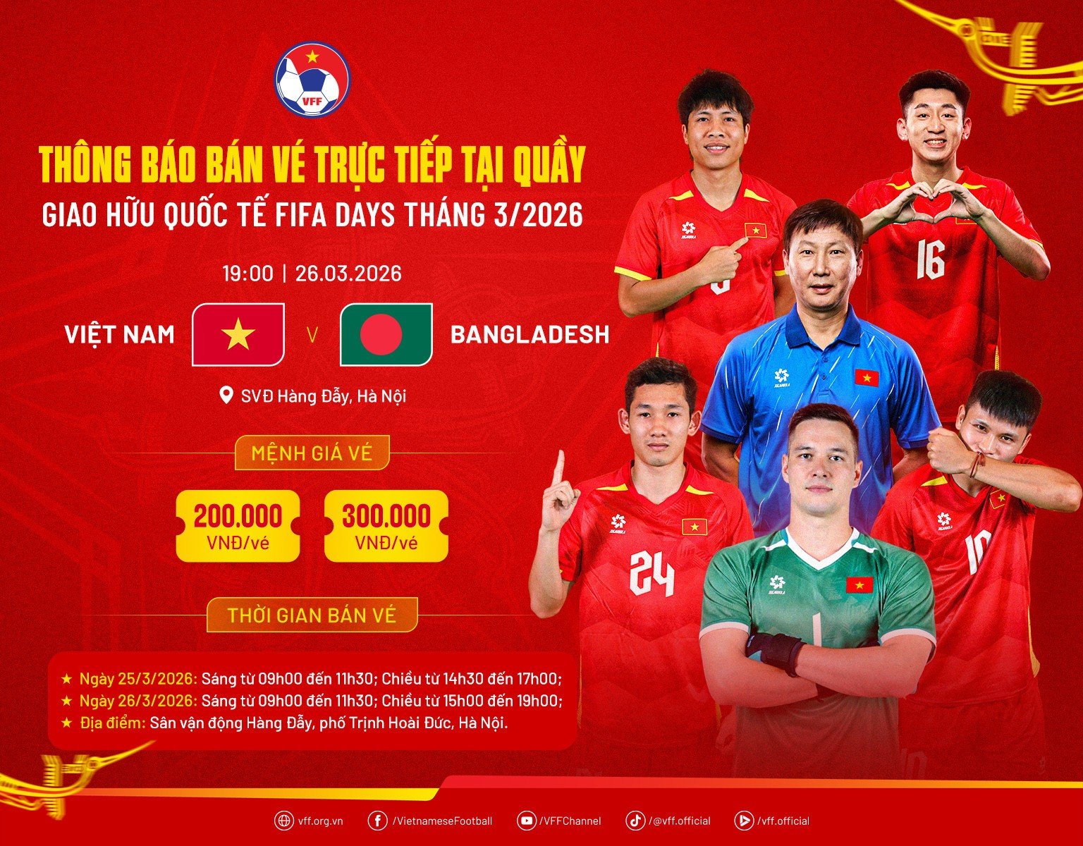 24/03/2026 14:33VFF bán vé trực tiếp trận tuyển Việt Nam gặp Bangladesh