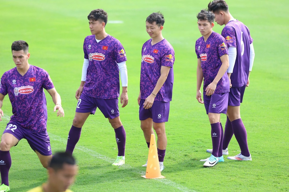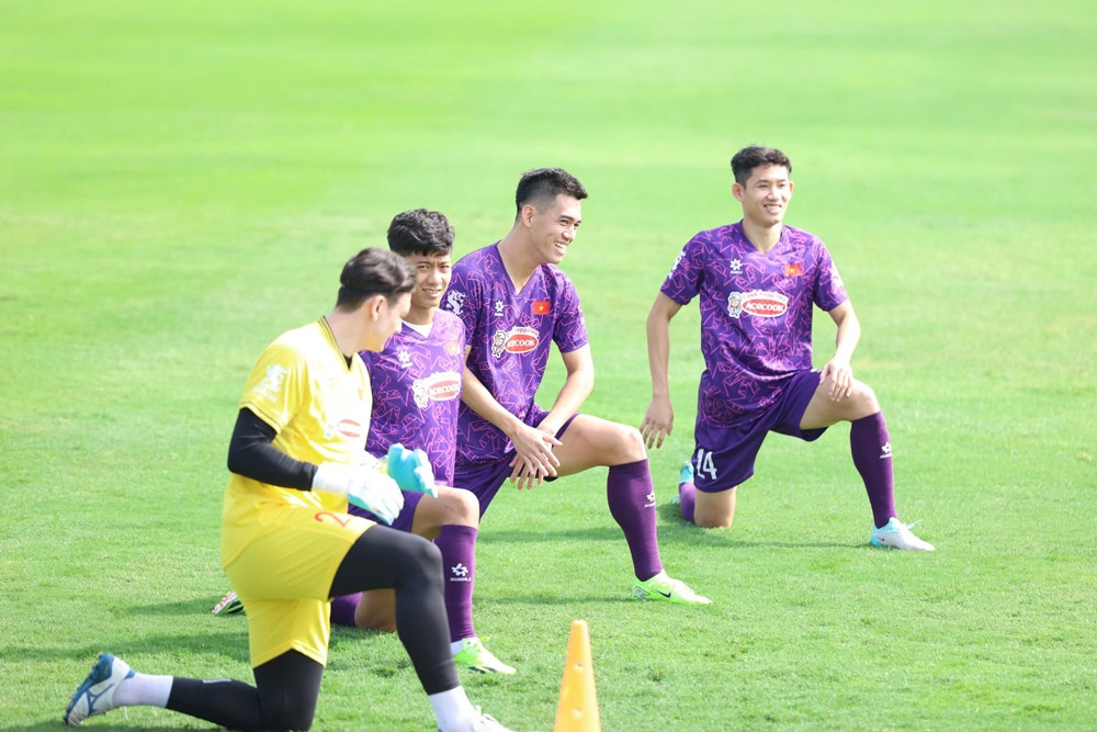 Trong khi đó, 23 cầu thủ ra sân sáng nay khởi động và chủ yếu tập nhẹ để duy trì cảm giác bóng.