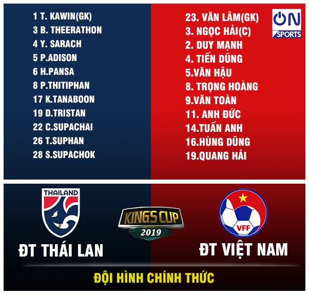18h30: Đã có đội hình xuất phát của ĐT Thái Lan. Đáng chú ý là bộ 3 đang thi đấu tại nước ngoài là Kawin Thamsatchanan (OH Leuven - Bỉ), Theerathon Bunmathan (Yokohama F. Marinos - Nhật Bản) Thitipan Puangchan (Oita Trinita - Nhật Bản) đều đá chính.