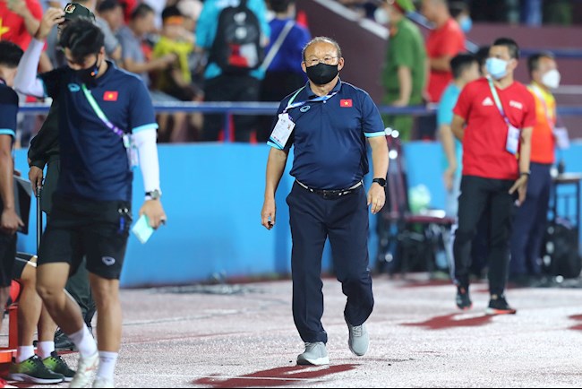 35': Có rất ít không gian chơi bóng cho các cầu thủ của chúng ta. Bên ngoài đường pitch, HLV Park Hang-seo tỏ ra khá sốt ruột. Ông thầy người Hàn Quốc liên tục hối thúc, chỉ đạo các học trò.