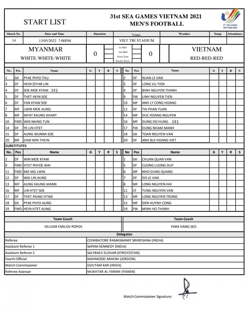 68': Vừa có thêm một cầu thủ U23 Myanmar phải nhận thẻ vàng vì lỗi phản ứng. Đội khách chơi đeo bám rất khó chịu và rất biết cách gây ức chế cho đối phương.