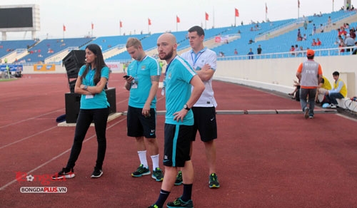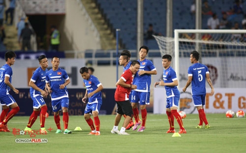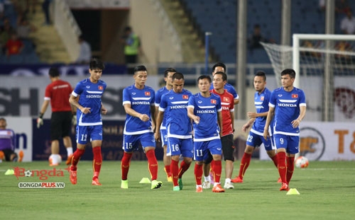 19h20: Đội tuyển Việt Nam đã ra sân khởi động, chuẩn bị cho màn so tài với Man City.