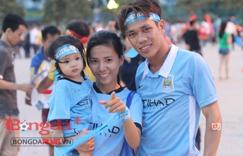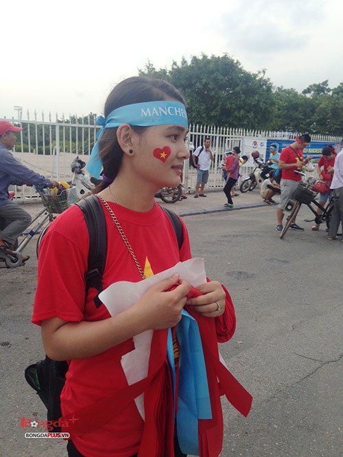 17h45: Trước trận đấu giữa ĐT Việt Nam và CLB Man City, có khá đông CĐV đã có mặt ở SVĐ QG Mỹ Đình từ khá sớm. Nhóm PV BongdaPlus đã chụp lại được hình ảnh 1 fan nữ vừa yêu mến ĐT Việt Nam và dành tình cảm cho Man xanh.