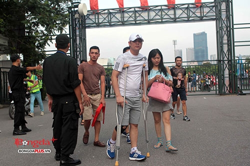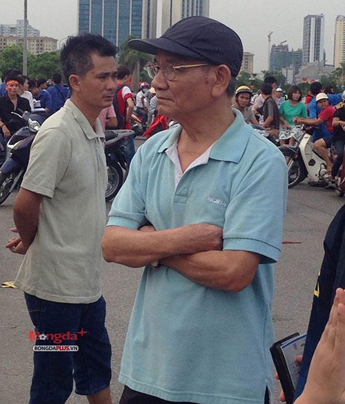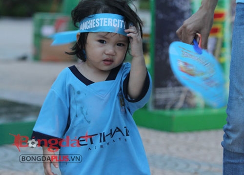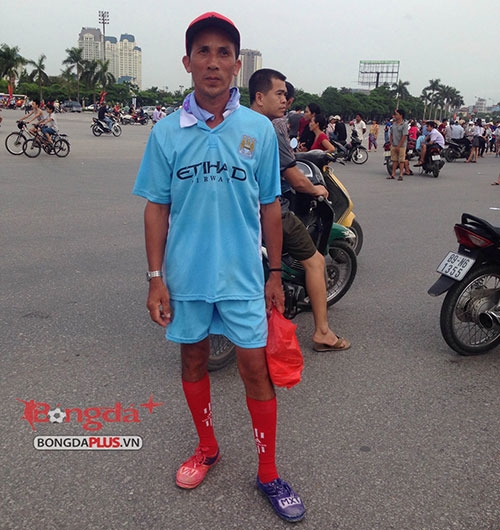 Chú không có vé vào xem và đang chờ 1 người hứa cho vé nhưng chưa thấy. Ấn tượng là đôi giày với một bên ghi VN (ĐT Việt Nam) - MXT (ám chỉ Man City).