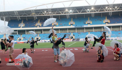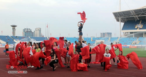 Trước đó, nam ca sỹ Minh Quân góp phần hâm nóng bầu không khí sân Mỹ Đình trước giờ bóng lăn bằng hai bài hát Niềm tin khao khát và sau đó là cùng vũ đoàn lên đến 30 người thể hiện bài Tôi yêu bóng đá.