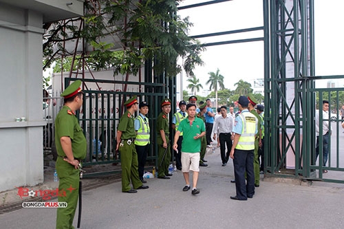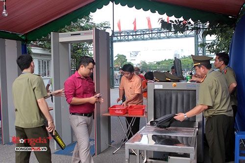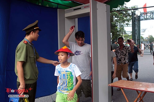 18h30: Lực lượng an ninh sân làm việc rất nghiêm túc và hướng dẫn CĐV vào sân.