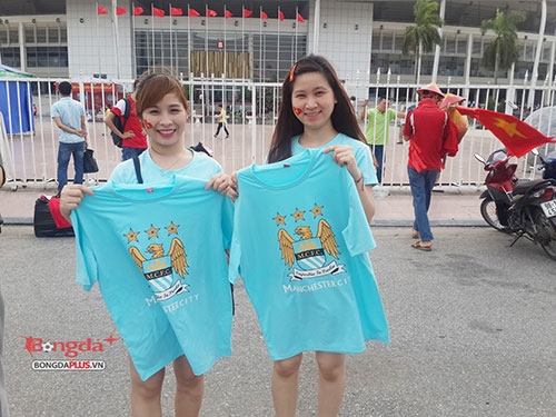 18h15: Hai nữ CĐV này là sinh viên đến từ trường Kinh Doanh và Công Nghệ nhưng lại rất thích xem Premier League. Nhân sự kiện Man City đến Việt Nam, 2 cô gái này tranh thủ bán những chiếc áo đấu của đội Á quân Premier League. Họ hi vọng một trong số các thành viên của Man City sẽ mua làm kỷ niệm.
