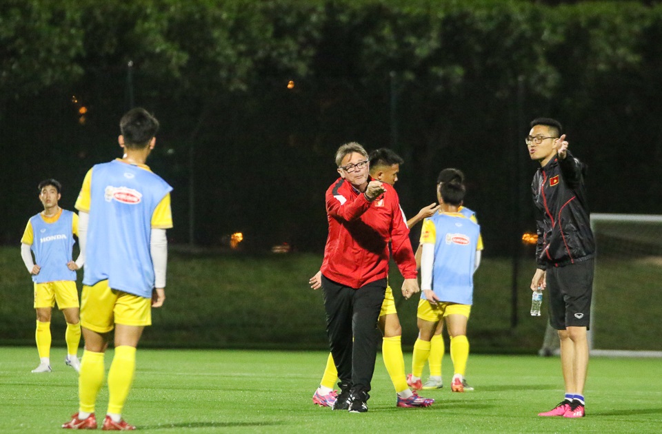 Trước khi khép lại buổi tập, HLV Philippe Troussier đã dành ít phút động viên tinh thần các học trò.