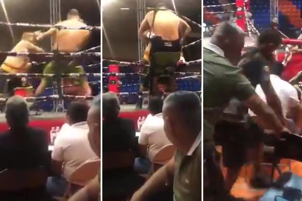 | Võ đài bị sập sau khi 2 võ sĩ đè lên |