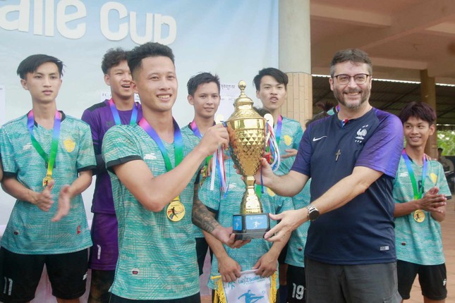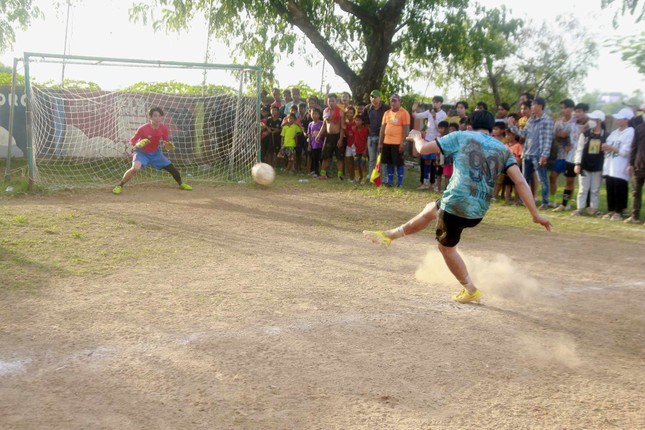 Ở cú sút quyết định, đứng trước chấm 11m của FC Bãi Cải là Văn Khang, người bình thường làm công việc sửa xe hơi. Liếc nhìn sang, va vào tôi là ánh mắt lo lắng của đội trưởng Văn Pháp cùng đôi bàn tay nắm chặt. Vào rồi! Một cú sút rất căng vào góc cao kéo theo thanh âm vỡ òa của cả sân bóng. Tất cả ùa vào ôm lấy người hùng khoác áo số 4, trước khi sung sướng đón chiếc Cúp từ cha linh mục.