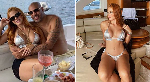 Adriano thư giãn bên một người đẹp tóc đỏ trong tiệc sinh nhật tuổi 41 trên du thuyền sang trọng, nơi anh chi 2.500 bảng cho những chai champagne.