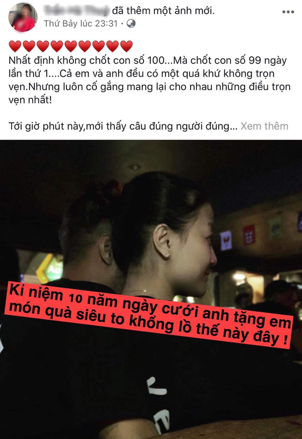Lý do chúng ta ly thân là vì em phát hiện ra những cuộc chơi bời truỵ lạc của anh. Chúng ta đã ngồi cùng bố mẹ và anh đã hứa trước mặt em anh sẽ thay đổi. Ngày em đề nghị ly hôn vì đã tuyệt vọng về sự thay đổi của anh, ngay khi anh đồng ý, ngày hôm sau anh mang NGƯỜI YÊU BẤY LÂU của anh đi giới thiệu với toàn thể bạn bè, không quên khẳng định: Anh và Trang ly dị xong rồi. Đến tận ngày hôm nay quyết định ly hôn cũng đã có đâu? Vậy mà anh và bạn gái vừa kỉ niệm 100 ngày quen nhau (không biết có thật là chỉ 100 ngày không). Anh và bồ anh vẫn không tha cho em một ngày nào. Hằng ngày cà khịa, móc mỉa, chửi bới trên Facebook, dạy cả em cách làm vợ, làm mẹ".