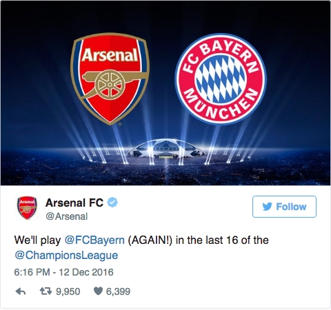 Mùa giải năm nay, Arsenal đã xuất sắc vượt qua PSG để kết thúc vòng bảng với vị trí dẫn đầu. Khả năng họ gặp các đội bóng lớn giảm đi rất nhiều. Chỉ còn lại 2 ông lớn mà họ có thể gặp là Bayern Munich và Real Madrid. Cuối cùng, cái duyên của Arsenal và Bayern Munich một lần nữa lại tìm đến nhau.