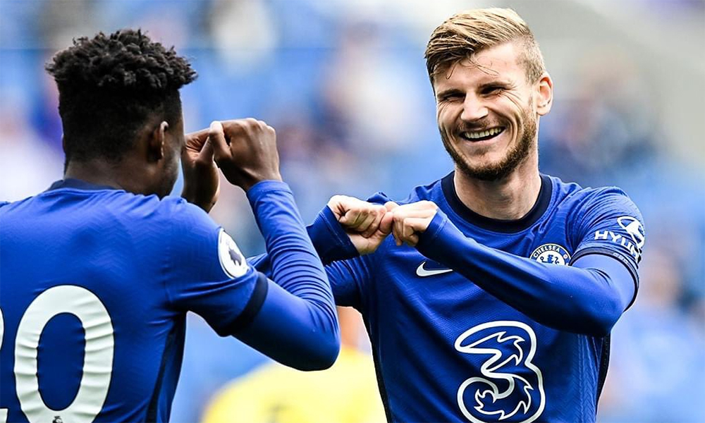 Chỉ 3 phút 27 giây sau khai cuộc và ở lần chạm bóng thứ hai, trung phong người Đức đã lập công. Từ quả phạt bên cánh phải vào của Hakim Ziyech, Callum Hudson-Odoi di chuyển để nhận bóng, đánh đầu tới vị trí thuận lợi để Werner dứt điểm trong thế không người kèm cặp, tung lưới Brighton.