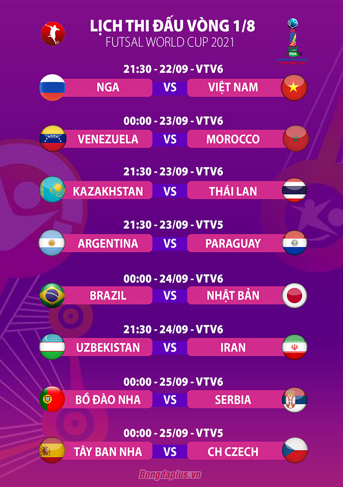 21/09/2021 13:19Xác định đầy đủ 8 cặp đấu vòng 1/8 VCK FIFA Futsal World Cup 2021