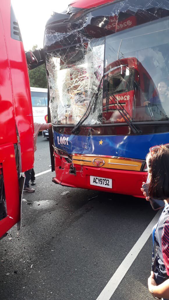 Cú va chạm giữa hai xe khiến nhiều thành viên mất đà lao về phía trước, may mắn là không có thành viên nào của Đoàn thể thao Việt Nam bị thương nặng.