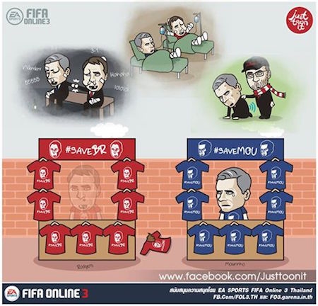 Phong trào mang tính hài hước này bắt nguồn từ Man United. Cách đây 2 năm, khi David Moyes còn làm việc tại Old Trafford, fanpage mang tên "Just toon it" của Thái Lan thường có những bức hình vui với khẩu hiệu "save Moyes" (bảo vệ Moyes).