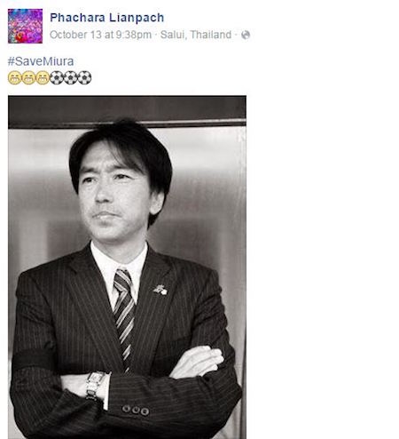 Tới khi gặp Việt Nam, các CĐV Thái bắt đầu nghĩ đến cụm từ "save Miura". Bởi trong cả tất cả những lần đối đầu với người Thái, HLV Miura đều chịu thất bại trong thế trận thua kém hơn hẳn.