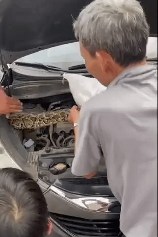 Kinh ngạc phát hiện "vị khách không mời" dài hơn 2m cuộn tròn trong khoang máy ô tô