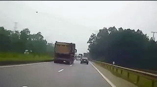 Kinh hoàng clip xe máy kẹp 3 đánh võng trên cầu Nhật Tân rồi ngã nhào trước mũi xe tải