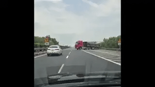 Kinh hoàng cảnh xe tập lái bị xe tải đâm xoay ngang, kéo lê trên cao tốc