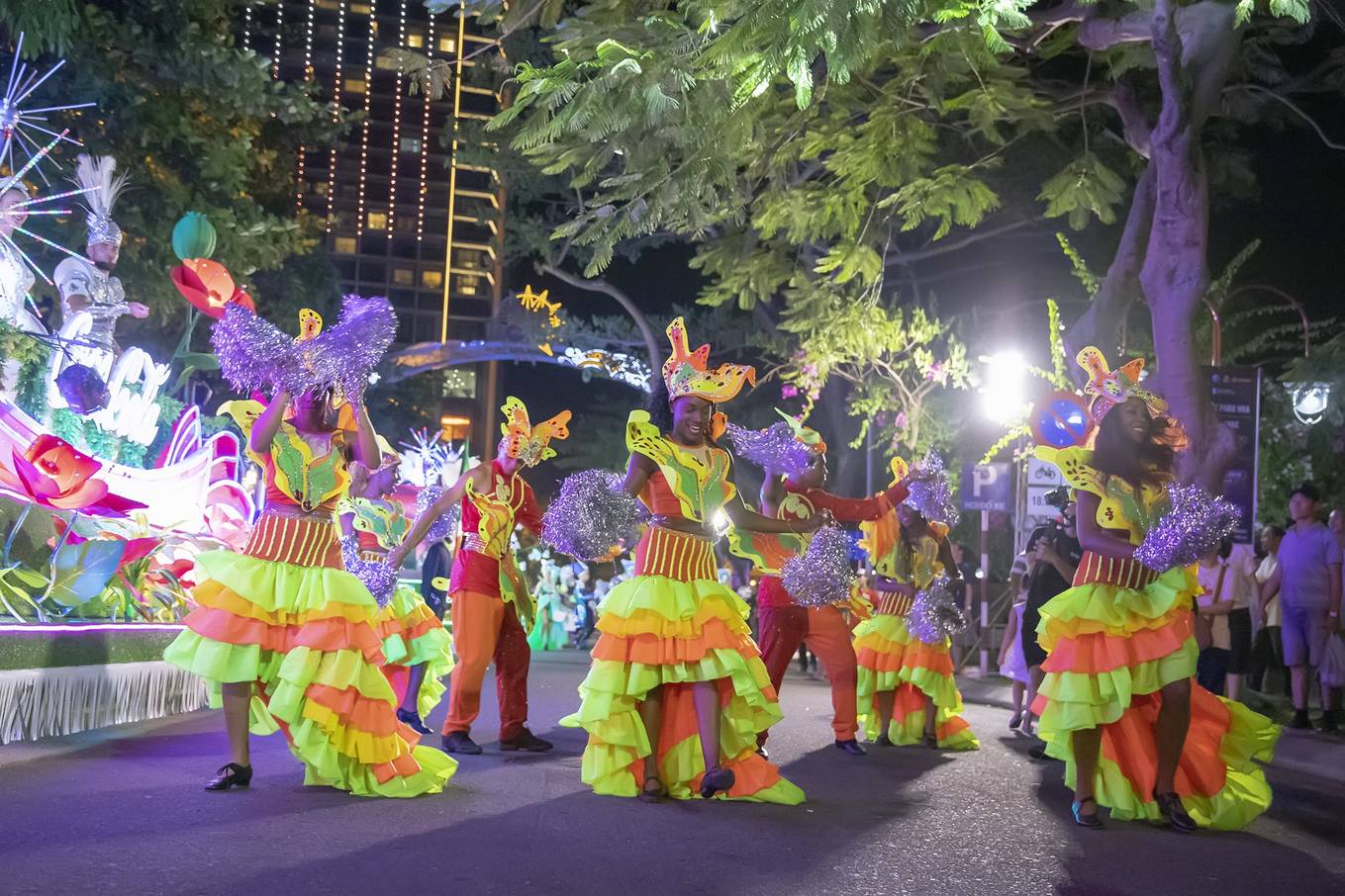 Bốn xe hoa được trang trí với nhiều nét đặc trưng đại diện cho tám quốc gia tham dự lễ hội pháo hoa đã diễu hành trên tuyến đường đẹp nhất. Để phục vụ cho lễ hội, thành phố đã tạm thời cấm lưu thông các phương tiện trên đường Bạch Đằng đoạn từ cầu quay Sông Hàn đến đường Lý Tự Trọng.