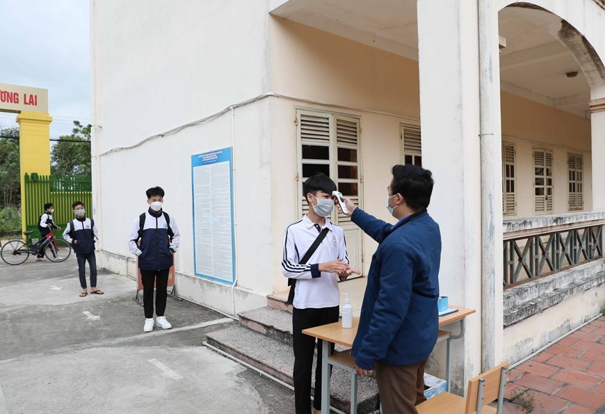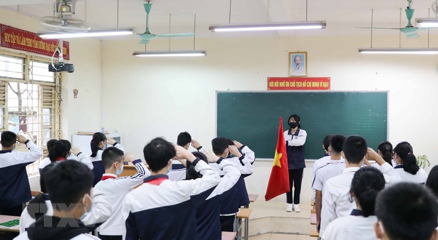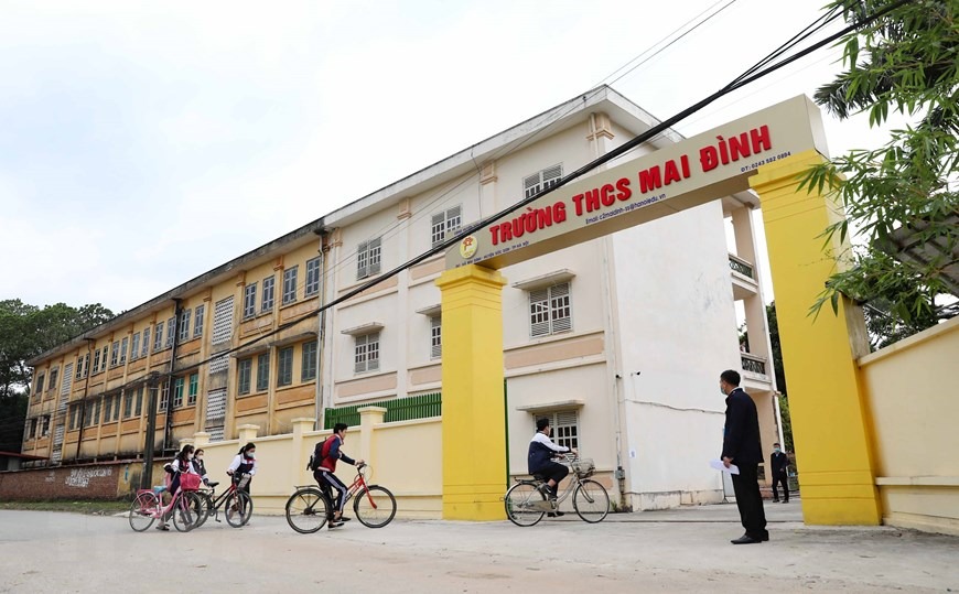 Sáng 22/11, nhiều trường trung học cơ sở của 17 huyện, thị xã ở Hà Nội đón học sinh lớp 9 trở lại trường học trực tiếp sau thời gian ở nhà học trực tuyến để phòng, chống dịch COVID-19.