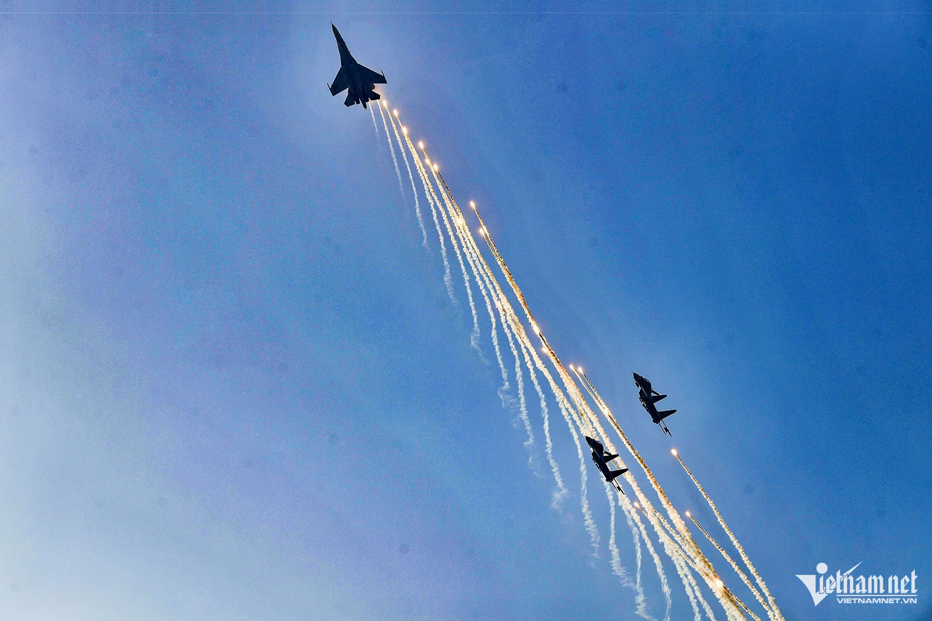 30/04/2025 17:0321 phát đại bác rền vang, tiêm kích Su30-MK2 thả bẫy nhiệt sáng rực trời TPHCM