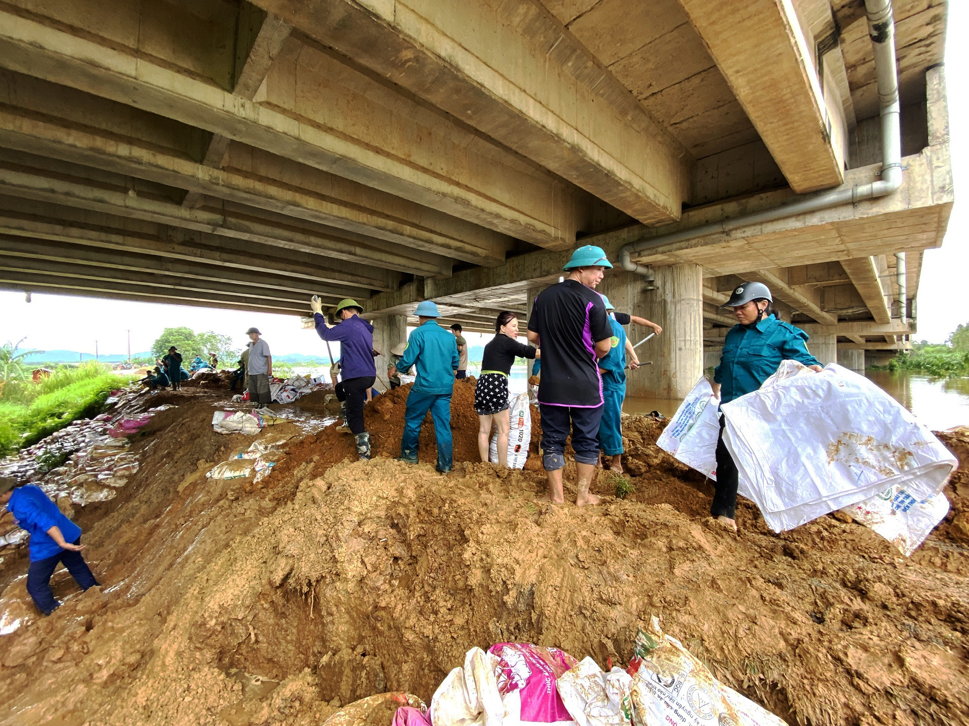 Theo ghi nhận của PV VietNamNet vào chiều 10/9, tuyến đê tả, đê hữu sông Hồng trên địa bàn huyện Hạ Hòa và Cẩm Khê có nhiều điểm nước đã mấp mé tràn đê. Các địa phương đang triển khai đắp đất chống tràn.