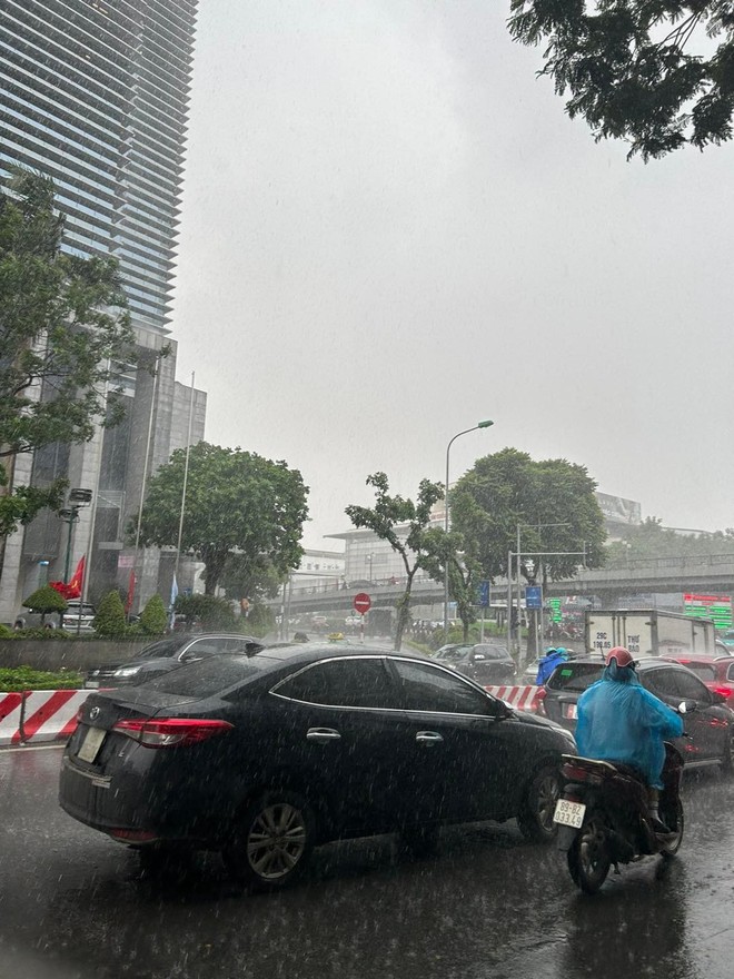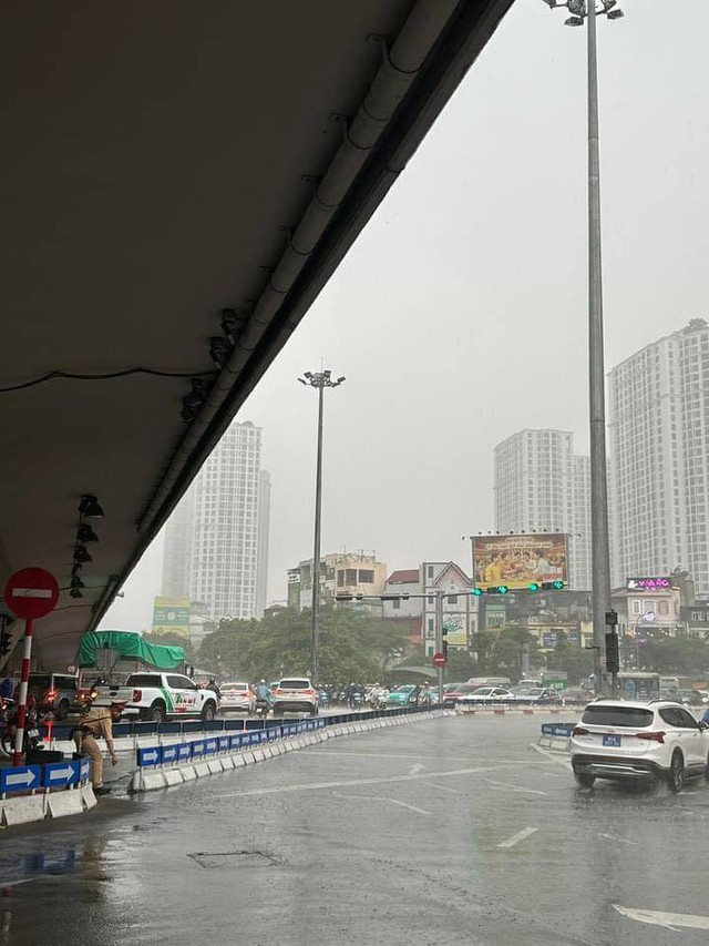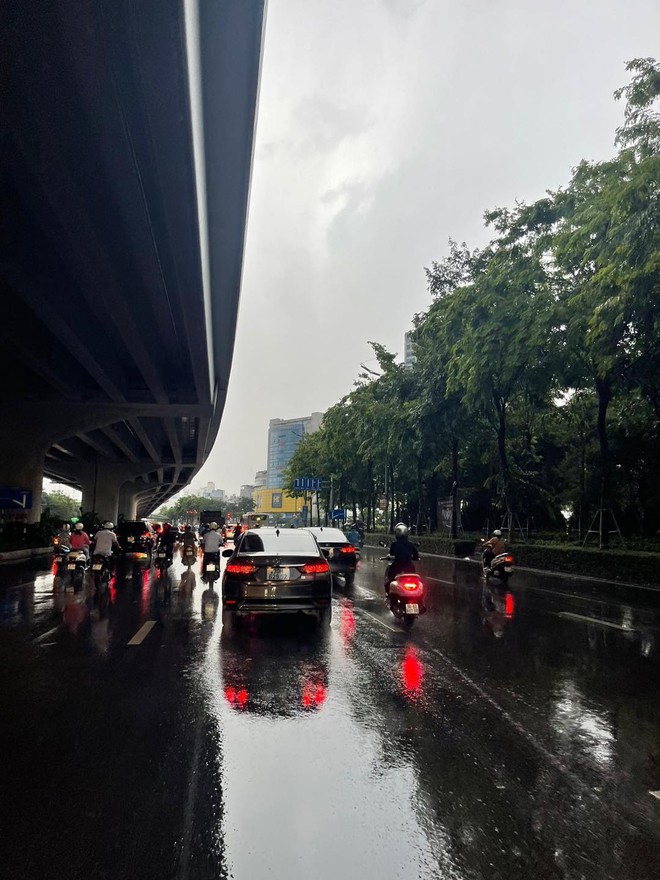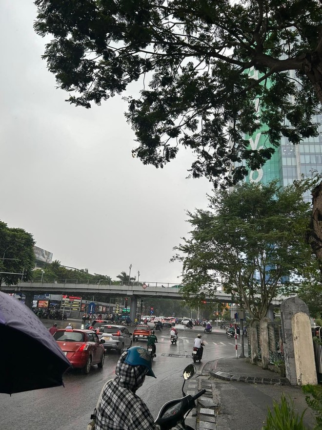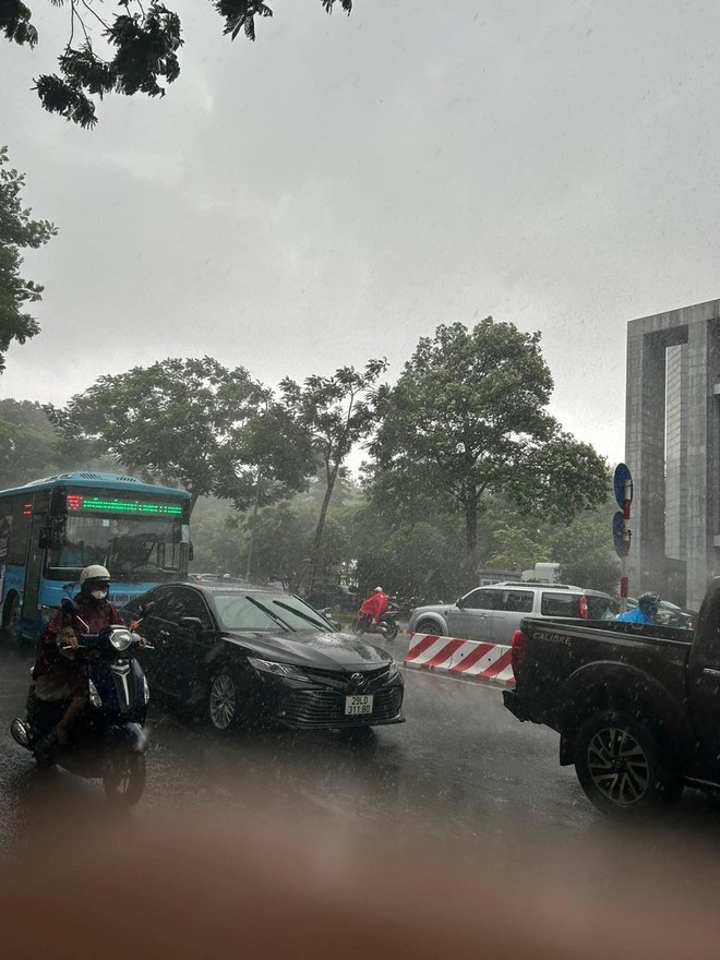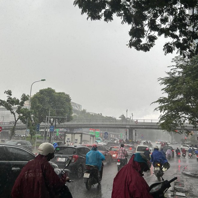 Từ khoảng 7h sáng nay (23/7), trên một số địa bàn quận, huyện Hà Nội đã có mưa dông, sấm chớp kéo dài. Cơn mưa xối xả khiến người dân gặp nhiều khó khăn trong quá trình di chuyển tới chỗ làm. Cảnh ùn tắc kéo dài trên các tuyến phố.