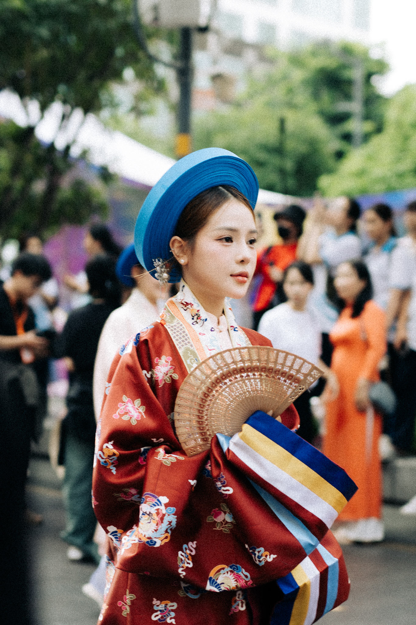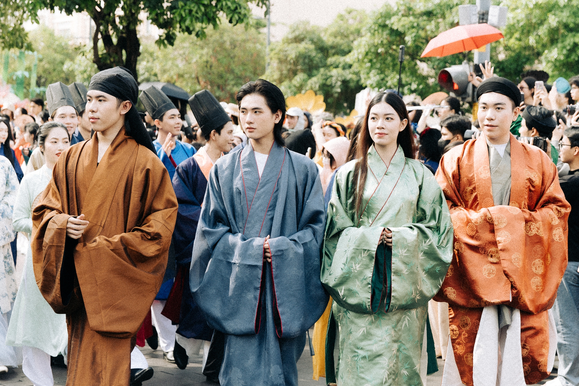 Hòa trong dòng người diễu hành, Minh Thư (24 tuổi, TP.HCM) xúc động chia sẻ: “ Ngắm các bạn trẻ mặc cổ phục, mình thật sự cảm thấy như đang bước chân vào lịch sử, hiểu hơn về giá trị truyền thống dân tộc. Đây không chỉ là trải nghiệm, mà còn là hành trình tự hào, lan tỏa niềm yêu thương với bản sắc văn hóa Việt Nam ”.